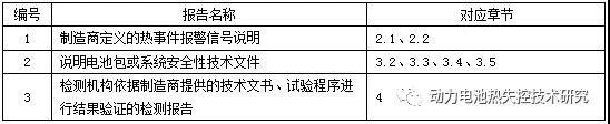 4.2 熱擴(kuò)散乘員保護(hù)分析與驗(yàn)證報(bào)告應(yīng)包含表1所列3項(xiàng)報(bào)告,其中第1項(xiàng)和第2項(xiàng)為制造商提供,第3項(xiàng)由檢測(cè)機(jī)構(gòu)出具。