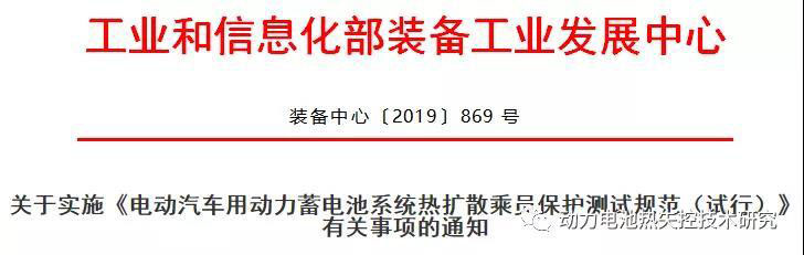 關(guān)于實(shí)施《電動(dòng)汽車用動(dòng)力蓄電池系統(tǒng)熱擴(kuò)散乘員保護(hù)測(cè)試規(guī)范(試行)》有關(guān)事項(xiàng)的通知