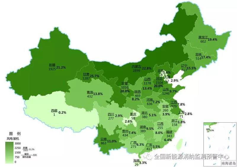 截至9月底各地區(qū)累計風電裝機(萬千瓦)及占本地區(qū)總裝機比重