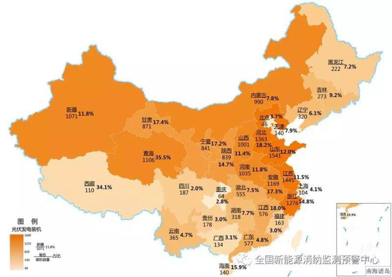 截至9月底各地區(qū)累計光伏發(fā)電裝機(萬千瓦)及占本地區(qū)總裝機比重