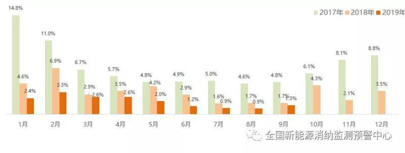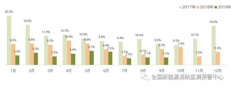 截至9月底全國棄風率月度變化情況