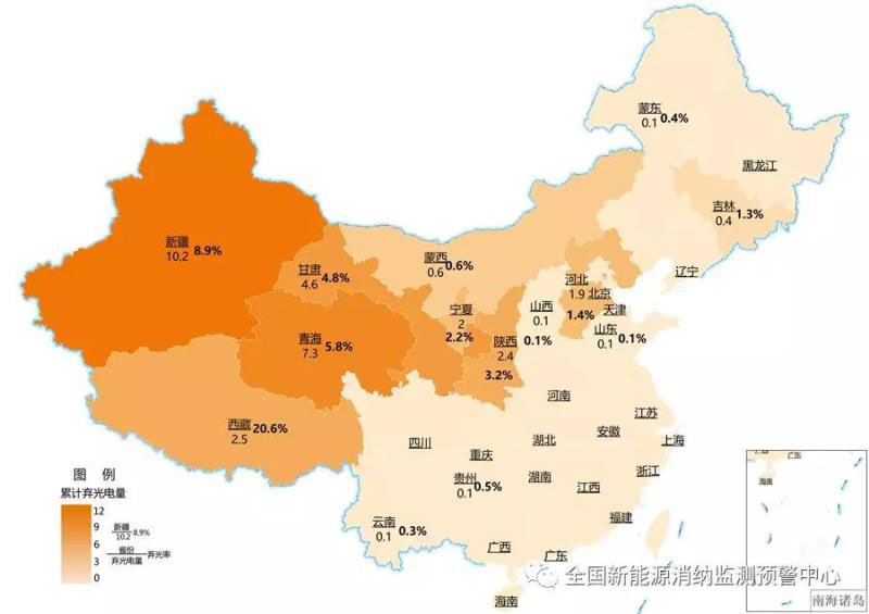 截至9月底各地區(qū)累計棄光電量(億千瓦時)及棄光率