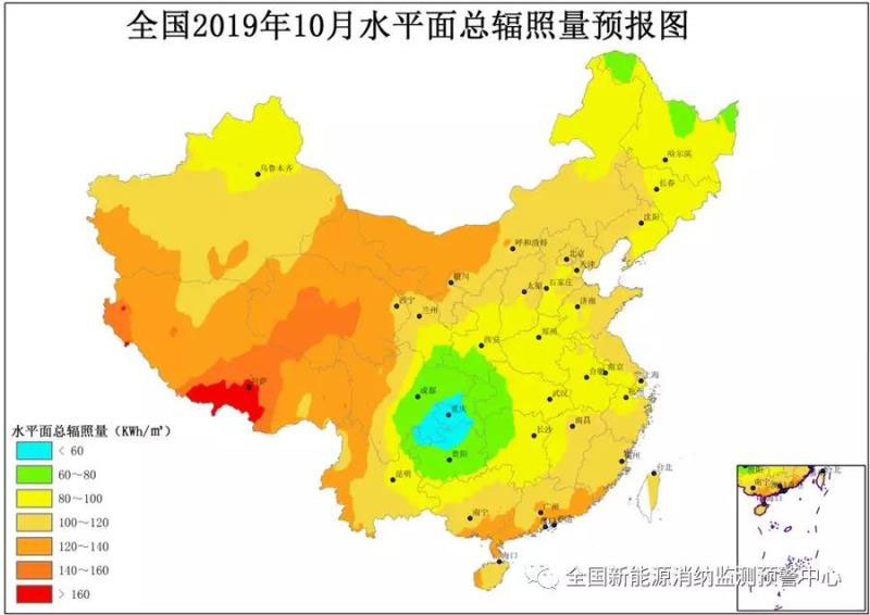 附圖2 全國2019年10月水平面總輻照量預報圖