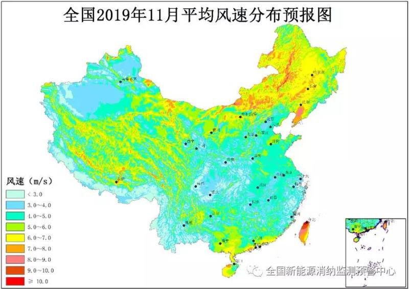 附圖3 全國2019年11月平均風速分布預報圖