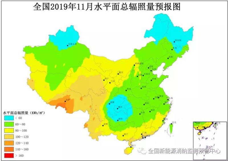 附圖4 全國2019年11月水平面總輻照量預報圖