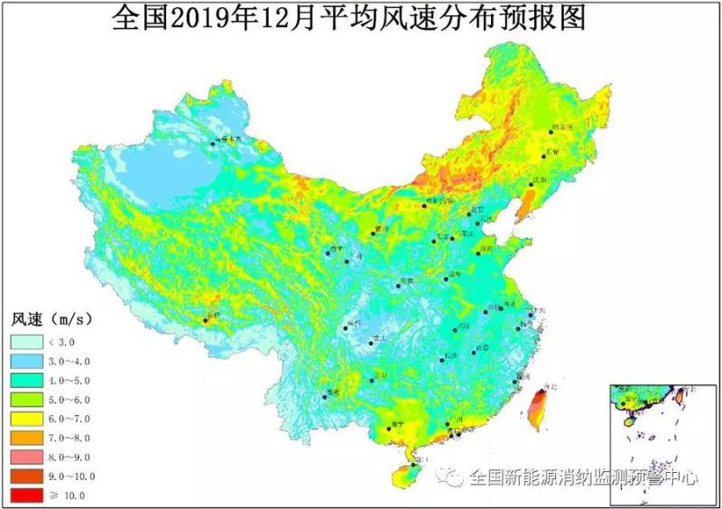 附圖5 全國2019年12月平均風速分布預報圖