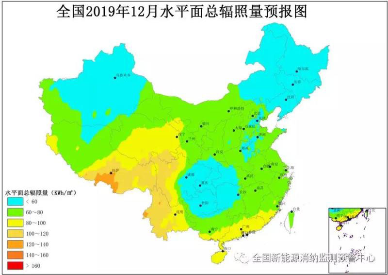附圖6 全國2019年12月水平面總輻照量預報圖