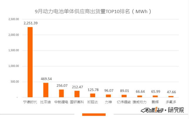 比亞迪方面隨著比亞迪車型產(chǎn)量的回升,裝機量9月環(huán)比上升40.1%,市場占有率有所提升。