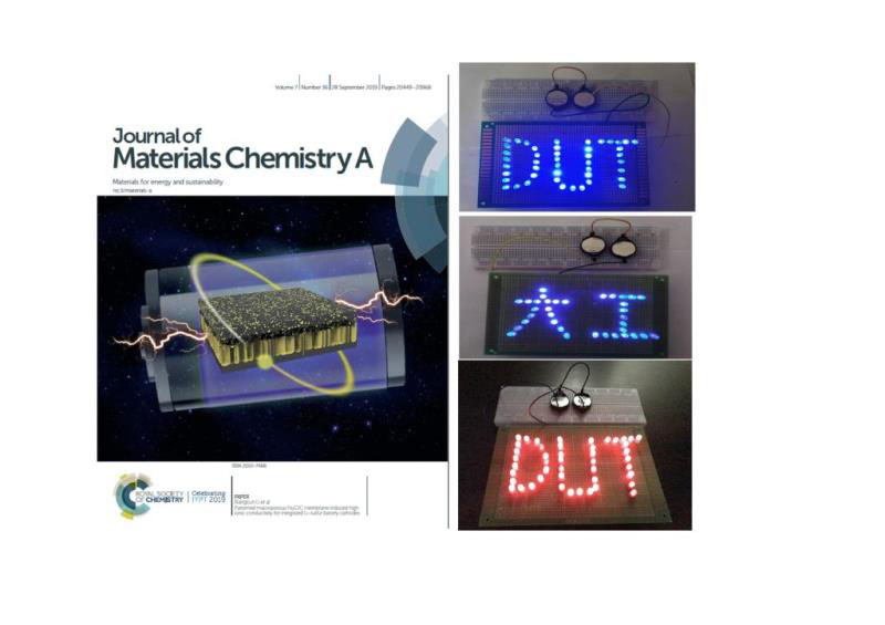 圖2.膜孔有序化排列,提高離子在電極膜內(nèi)的傳遞速率,提高鋰硫電池的倍率性能和循環(huán)穩(wěn)定性(兩個(gè)紐扣電池串聯(lián),點(diǎn)亮> 40 LED燈,> 2h)