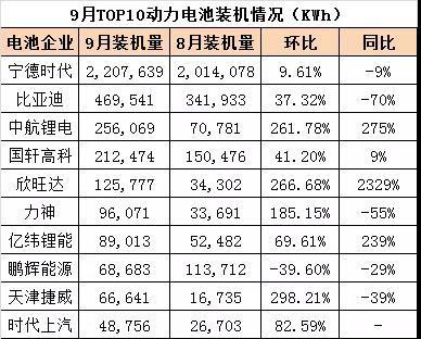 其中,中航鋰電深度綁定長(zhǎng)安及廣汽,排名迅速攀升;欣旺達(dá)展開與吉利旗下山西新能源汽車的合作,9月合作配套電池裝機(jī)量達(dá)112,326KWh;天津捷威與奇瑞深度合作,9月配套電池裝機(jī)量達(dá)56,751KWh。