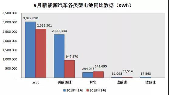 從9月裝機(jī)電池類型來(lái)看,受補(bǔ)貼退坡陣痛影響。其中,三元材料裝機(jī)量2.63GWh同比下降12.92%,磷酸鐵鋰材料裝機(jī)量0.95GWh,同比下降59.48%。