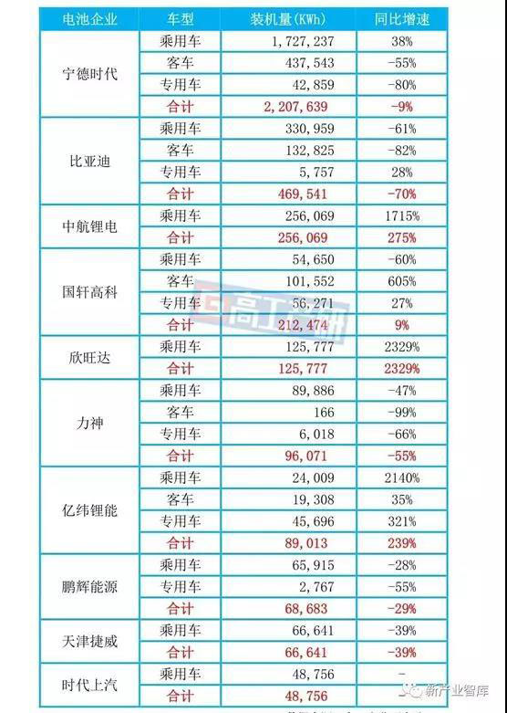 動(dòng)力電池企業(yè)方面,寧德時(shí)代、比亞迪、力神在客車領(lǐng)域的裝機(jī)量均同比下滑,同比降幅達(dá)到55%、82%及99%。