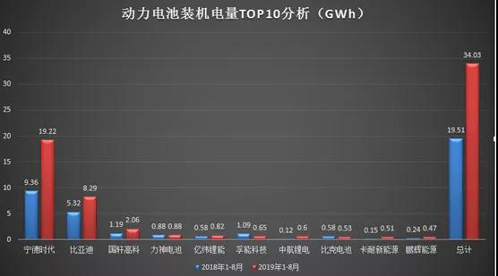 GGII統(tǒng)計(jì)數(shù)據(jù)顯示,1-8月分別進(jìn)入動(dòng)力電池裝機(jī)電量排名前十的企業(yè)分別有寧德時(shí)代、比亞迪、國軒高科、力神電池、孚能科技、億緯鋰能、中航鋰電、卡耐新能源、多氟多新能源、銀隆新能源、比克電池、桑頓新能源、鵬輝能源、聯(lián)動(dòng)天翼、捷威動(dòng)力、時(shí)代上汽、欣旺達(dá)、宇量電池、河南鋰動(dòng)、萬向一二三等20家電池企業(yè)。