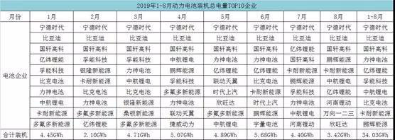 除此之外,孚能科技、比克電池、卡耐新能源和鵬輝能源等4家電池企業(yè)也進(jìn)入了前8月動(dòng)力電池裝機(jī)電量排名前十,但單月表現(xiàn)并不穩(wěn)定。