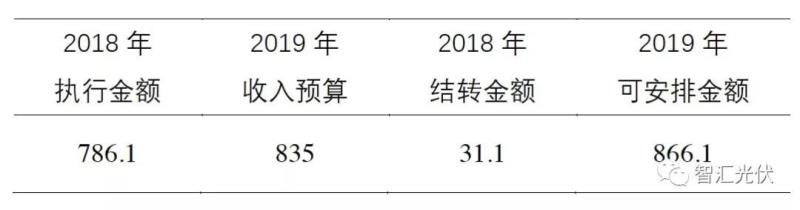 2019年可再生能源電價(jià)附加支出預(yù)算數(shù)為866.1億元,比2018年執(zhí)行數(shù)增加27.22億元,增長3.2%。其中,2018年預(yù)算收入835億元,2018年結(jié)轉(zhuǎn)金額31.1億元。