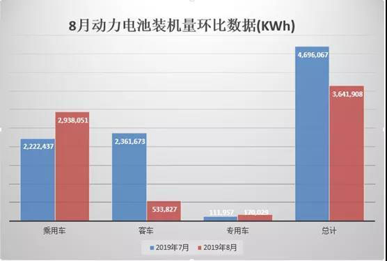 從8月各細(xì)分車型的電池裝機(jī)電量來看,新能源乘用車與專用車環(huán)比增長出現(xiàn)復(fù)蘇,而新能源客車卻出現(xiàn)斷崖式下滑,與7月的裝機(jī)情況相反。