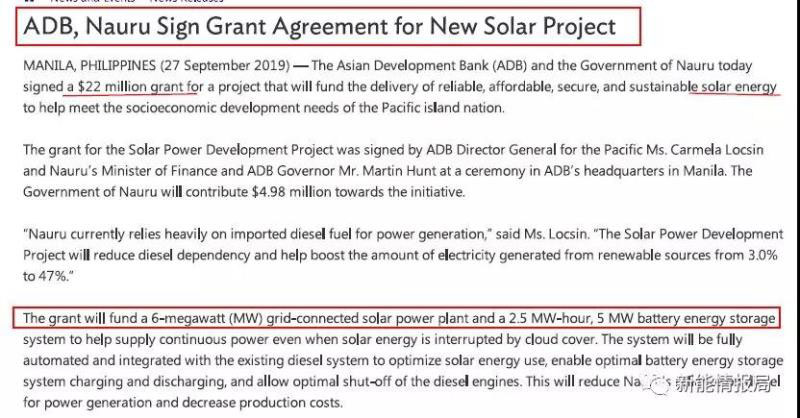 亞開(kāi)行表示,瑙魯目前嚴(yán)重依賴于進(jìn)口柴油發(fā)電。光伏項(xiàng)目的開(kāi)發(fā)將減少瑙魯對(duì)柴油的依賴,并有助于將可再生能源的發(fā)電量從3%提高到47%。