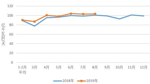1-8月份,全國制造業(yè)用電量23595億千瓦時(shí),同比增長3.4%,增速比上年同期回落3.7個(gè)百分點(diǎn)。8月份,全國制造業(yè)用電量3204億千瓦時(shí),同比增長2.3%;制造業(yè)日均用電量103.3億千瓦時(shí)/天,比上年同期和上月分別增加2.8億千瓦時(shí)/天和0.3億千瓦時(shí)/天。