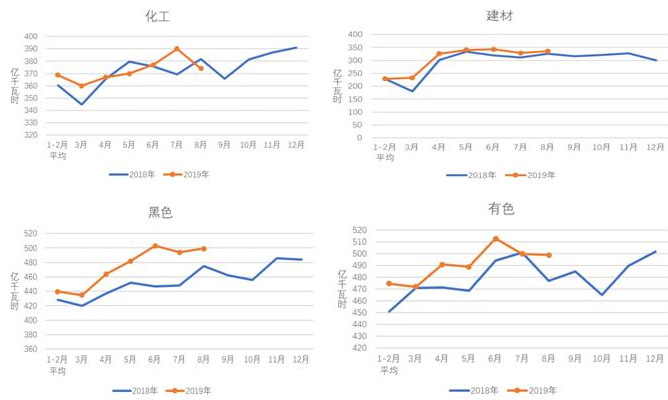 圖3 2018、2019年重點(diǎn)行業(yè)分月用電量情況