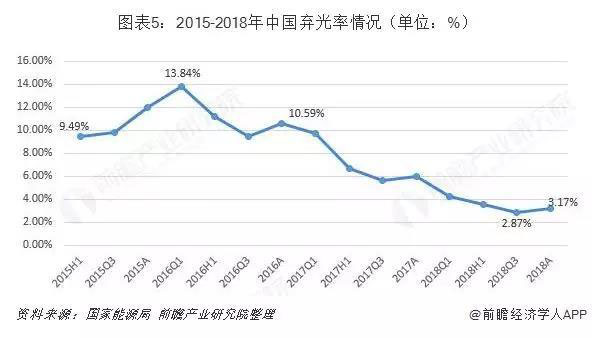 政府一系列政策相繼出臺,棄光現(xiàn)象得到有效改善。根據(jù)國家能源局?jǐn)?shù)據(jù)顯示,自2015年以來,我國棄光率呈波動下降的趨勢。棄光率從2016第一季度的13.84%高位,波動下降,至2018年第三季度,棄光率已經(jīng)降至的2.87%。