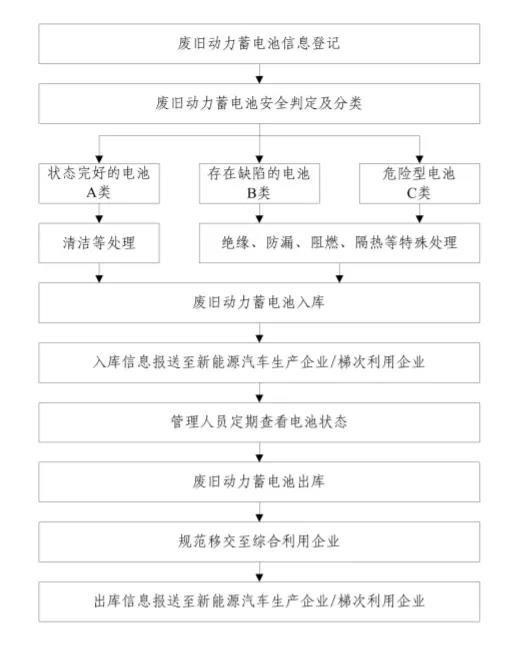 新能源汽車生產(chǎn)及梯次利用等企業(yè)應(yīng)依托回收服務(wù)網(wǎng)點(diǎn)加強(qiáng)對(duì)本地區(qū)廢舊動(dòng)力蓄電池的跟蹤?;厥辗?wù)網(wǎng)點(diǎn)負(fù)責(zé)收集、分類、貯存及包裝廢舊動(dòng)力蓄電池,不得擅自對(duì)收集的廢舊動(dòng)力蓄電池進(jìn)行安全檢查外的拆解處理。廢舊動(dòng)力蓄電池應(yīng)規(guī)范移交至綜合利用企業(yè)進(jìn)行梯次利用或再生利用。
