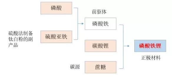 前驅(qū)體磷酸鐵的制備方法有多種,比較低成本的制備方法是用硫酸亞鐵和磷酸來制備。磷酸是大宗商品,而硫酸亞鐵主要來源硫酸法制備鈦白粉的副產(chǎn)品。從整個(gè)磷酸鐵鋰正極材料的原材料來看,除了碳酸鋰的價(jià)格相對較高以外,其他的硫酸亞鐵、磷酸、蔗糖等都十分便宜。