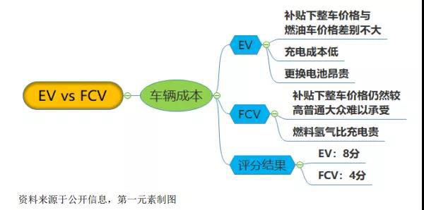 無論是EV還是FCV,電池系統(tǒng)都占了整車的大部分成本,動力電池系統(tǒng)占整車成本約40%,燃料電池系統(tǒng)占50%。