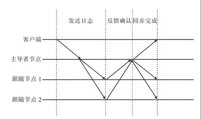 RAFT 算法的日志復制流程總體遵循狀態(tài)機復制的原則和流程,其核心在于節(jié)點內(nèi)置時鐘周期及跟隨者節(jié)點反饋機制。其中,內(nèi)置時鐘周期主要服務于節(jié)點選舉機制,確保主導節(jié)點的輪換及故障宕機情況下的系統(tǒng)可持續(xù)性。