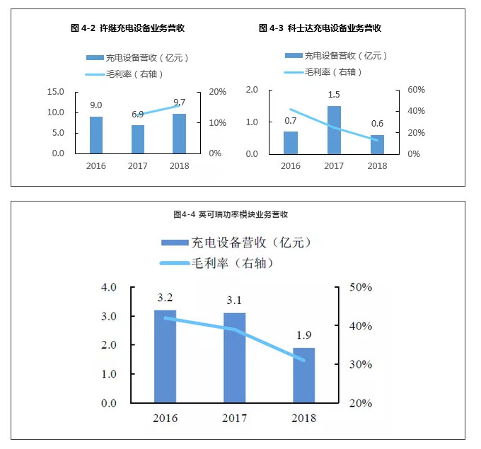 2)在充電設(shè)備層面,關(guān)注方向?yàn)榇蠊β食潆娂夹g(shù)所依賴的充電模塊。長期看,設(shè)備制造行業(yè)的技術(shù)壁壘并不高,主要難點(diǎn)在于直流充電模塊的制造。直流充電樁的發(fā)展為充電模塊的性能提出了更高的要求,建議布局自主研發(fā)能力強(qiáng)、在輸出功率和功率密度方面有關(guān)鍵技術(shù)的充電模塊生產(chǎn)企業(yè)。而對(duì)于充電樁其他基本元器件,因競爭激烈且利潤率不高,技術(shù)成熟且門檻低,不建議介入。