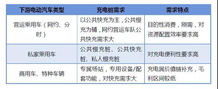 下游的新能源電動(dòng)汽車主要包括乘用車和商用車兩大市場,乘用車市場包括私人家庭、單位和租賃等,商用車市場包括公共交通、市政環(huán)衛(wèi)以及物流等。不同類型電動(dòng)汽車具有不同的充電需求,這便催生了中游充電運(yùn)營商的不同運(yùn)營模式和運(yùn)營戰(zhàn)略。
