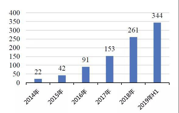 圖2-10 2014-2019年上半年新能源汽車保有量(萬輛)