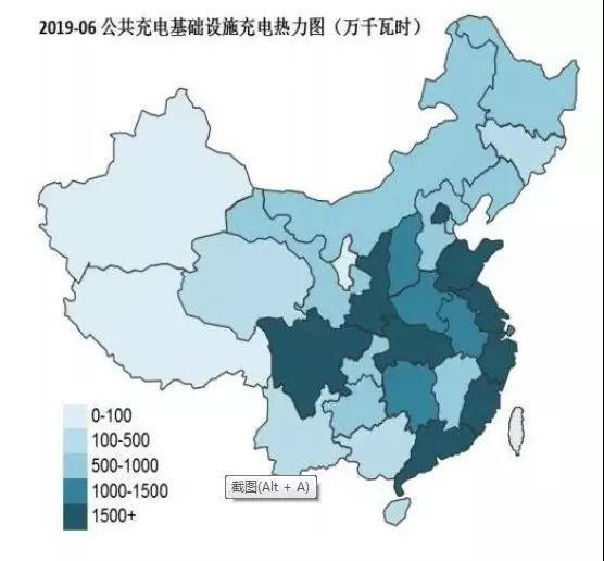 公共樁充電量熱力圖與分布圖并不完全匹配,2019年6月,廣東、江蘇和陜西充電量位居前三名,四川、福建、山東和湖北緊隨其后,而北京、上海兩大公共樁保有量大省僅位列第9、10名。這說明一二線城市之間在充電設(shè)施建設(shè)與電動(dòng)汽車組成結(jié)構(gòu)上有很大差異:北京、上海等一線城市充電設(shè)施建設(shè)相對(duì)完善甚至較為超前;電動(dòng)乘用車在北京、上海推廣情況好,乘用車通常會(huì)配建私人樁,因此公共樁使用率較低,而陜西、四川等地公共樁主要為滿足公交車充電需求,因此使用率較高。