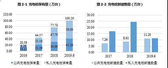 從私人充電樁領(lǐng)域看,2019年6月私人充電樁數(shù)量較2018年同期增加27萬臺(tái),月均新增2.25萬臺(tái)。私人充電樁中交流樁占絕大多數(shù)。