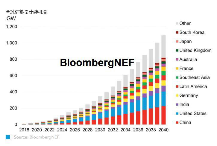 2040年全球已投運(yùn)儲能項(xiàng)目的累計(jì)裝機(jī)規(guī)模