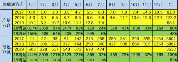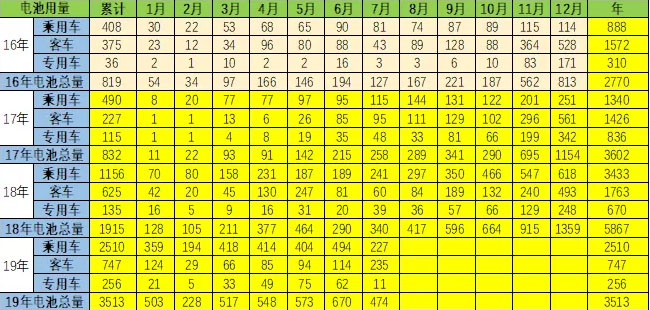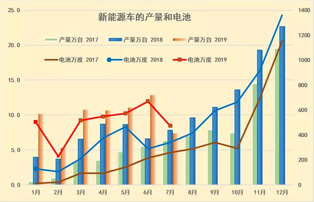 從2018年年末到19年1-7月的汽車走勢看,2019年的電池需求是較好增長狀態(tài), 2019年新能源車新補(bǔ)貼政策的波段釋放需求和實(shí)現(xiàn)供需的逐步標(biāo)準(zhǔn)提升的放量的拉動效果較好。