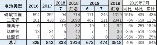 18年磷酸鐵鋰占比46%,19年是86%,且7月是96%,磷酸鐵鋰恢復(fù)增長現(xiàn)象較明顯。
