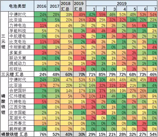 寧德時(shí)代上市前后很強(qiáng),1-7月也很優(yōu)秀,達(dá)到49%。而比亞迪的電池需求也比2018年大幅增長,份額達(dá)到22%,這也是客車的體系支撐對比亞迪在7月稍低。
