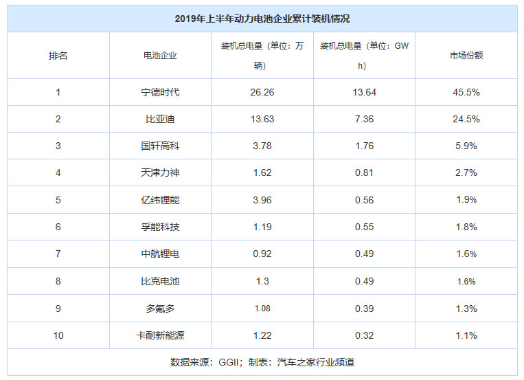 GGII數(shù)據(jù)顯示,2019上半年,動力電池裝機(jī)總電量約30.01GWh,其中排名前十的企業(yè)占據(jù)整體88%的市場份額,相比去年提升5個百分點(diǎn)。而截至2019年6月,國內(nèi)動力電池企業(yè)有60家,這意味著,留給剩下50個玩家的“椅子”數(shù)量僅剩下12%。
