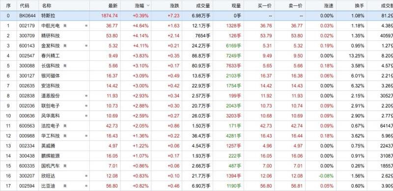 特斯拉將提升產(chǎn)量產(chǎn)速 A股相關(guān)概念股多數(shù)收漲