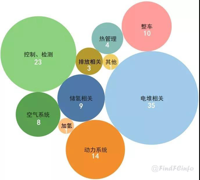 2019年6月,現(xiàn)代公司在燃料電池領(lǐng)域共公開專利51件,主要涉及電堆、系統(tǒng)控制、系統(tǒng)檢測等技術(shù)分支。