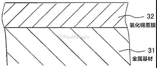 如上圖所示,氧化錫覆膜設(shè)置于金屬基材表面的至少一部分上即可,但是由于在氣體擴(kuò)散層與隔板的接觸部分特別要求耐蝕性,因而需要在金屬基材的表面之中至少在與氣體擴(kuò)散層接觸的部分上形成氧化錫覆膜。關(guān)于元素比(Zr/Sn),從耐蝕性和接觸電阻等方面進(jìn)行考慮,優(yōu)選為0.40- 0.50。