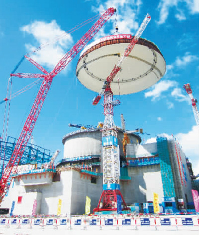 “從核島筏基第一罐混凝土澆筑到穹頂順利吊裝,臺(tái)山核電站1號(hào)機(jī)組只用了24個(gè)月。而芬蘭奧爾基盧奧托核電站用了48個(gè)月,法國(guó)弗拉芒維爾核電站3號(hào)機(jī)組至今尚未進(jìn)行穹頂?shù)跹b,臺(tái)山核電建造工期較國(guó)外在建同類堆型電站整整縮短了一半。”中核華興臺(tái)山核電項(xiàng)目部經(jīng)理周博介紹。