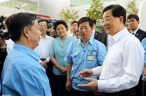 9月18日下午,中共中央總書記、國家主席、中央軍委主席胡錦濤在天津出席發(fā)展中國家科學(xué)院第十二次學(xué)術(shù)大會暨第二十三屆院士大會開幕式后,由中共中央政治局委員、國務(wù)委員劉延?xùn)|和中共中央政治局委員、天津市委書記張高麗等陪同,來到天津一些高新技術(shù)企業(yè),就實(shí)施創(chuàng)新驅(qū)動發(fā)展戰(zhàn)略進(jìn)行調(diào)查研究,同干部群眾共商加快轉(zhuǎn)變經(jīng)濟(jì)發(fā)展方式、保持經(jīng)濟(jì)平穩(wěn)較快發(fā)展大計,勉勵大家同心協(xié)力、奮發(fā)進(jìn)取,以優(yōu)異成績迎接黨的十八大勝利召開。