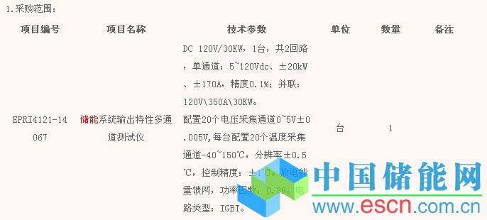 中國電力科學(xué)研究院儲(chǔ)能系統(tǒng)輸出特性多通道測試儀競爭性談判采購項(xiàng)目