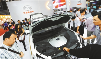 圖為一次車展上,新能源、新動力、新概念成為比亞迪的口號