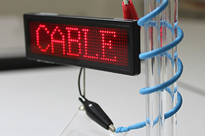 扭一扭:在被扭曲和拉緊的狀況下,線狀鋰離子電池依然能為LED顯示屏供電。(圖片來源:樂金化學(xué))