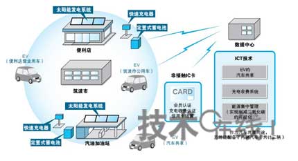 如上所述,智能城市項目還提出了導入電動汽車(EV)和插電式混合動力車(PHEV)等新一代低碳型汽車的目標。規(guī)模最大的項目是在加利福尼亞州啟動的“EV項目”,計劃在2012年之前的3年間,導入8300輛EV和PHEV、設(shè)置1萬5000座充電站。日本的“新一代能源與社會系統(tǒng)驗證試驗”項目也將在橫濱市和愛知縣豐田市分別導入大約2000輛EV和4212輛PHEV。其中豐田市還計劃作為公共設(shè)施導入25座充電站,目前已開始了先行設(shè)置(圖3)。