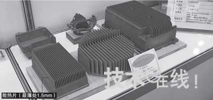 如果散熱片通過(guò)薄壁成型使散熱性得到提高的話,還可為輕量化做出貢獻(xiàn)。此外,由于形狀靈活性較高,因此還可對(duì)限定于有限空間內(nèi)的緊湊且復(fù)雜的形狀進(jìn)行成型。如果利用該精密鑄造技術(shù)對(duì)以往通過(guò)接合多個(gè)部件來(lái)制造的部件進(jìn)行一體成型的話,“還有望使成本得到降低”(該公司解說(shuō)員)。