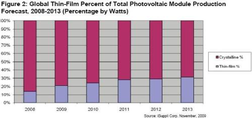 盡管去年多晶硅的合同價(jià)格下挫逾50%,但薄膜太陽能模塊市場(chǎng)前景依然樂觀。iSuppli公司預(yù)測(cè),到2013年,薄膜光伏太陽能模塊將占到整體模塊市場(chǎng)的30%以上,2008年該比例為14%。