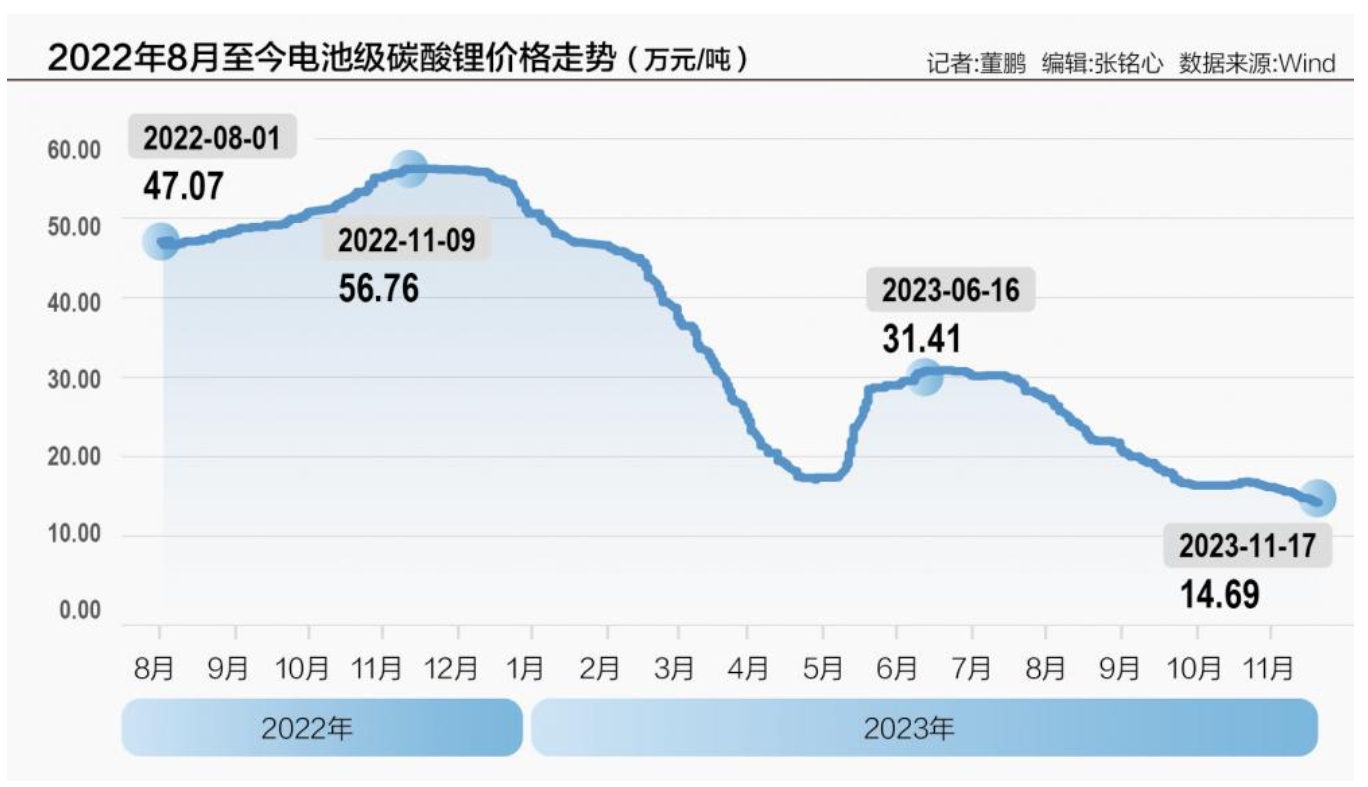 中國儲(chǔ)能網(wǎng)訊:近日,第三方市場(chǎng)機(jī)構(gòu)統(tǒng)計(jì)的碳酸鋰均價(jià)跌破15萬元/噸,再次創(chuàng)下年內(nèi)新低。